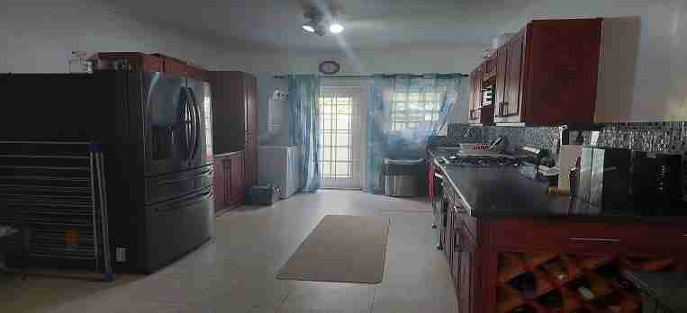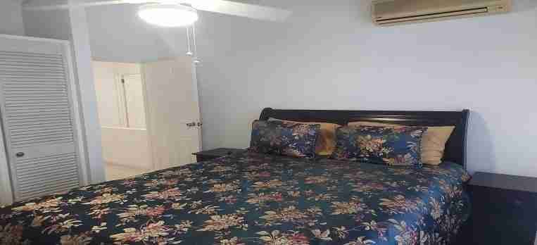 This well maintained 3-bedroom, all of which are upstairs, 2 1/2 bathroom townhouse is located in a community that has a total of 52 units. On the lower level of this well laid out unit is; the powder room as you enter to the right, the main living and dining areas that flow onto the covered back patio with the garden and dip pool. There is the kitchen with a refeigerator, stove & microwave plus the laundry with a stacked washer/dryer unti and just off if that is the drying yard. Upstairs are the 3-bedrooms with the ensuite having a lovley patio off of it. The two other bedrooms share a bathroom. All bedrooms have air-condition units. This community offers tennis courts, a children’s play area, a main shared pool and sanctuary plus ample grounds for walking and exercising. This unit comes with its own dip pool nestled in the privacy of the back garden. Good rental potential. This property requires a monthly maintenance fee of $904.00.