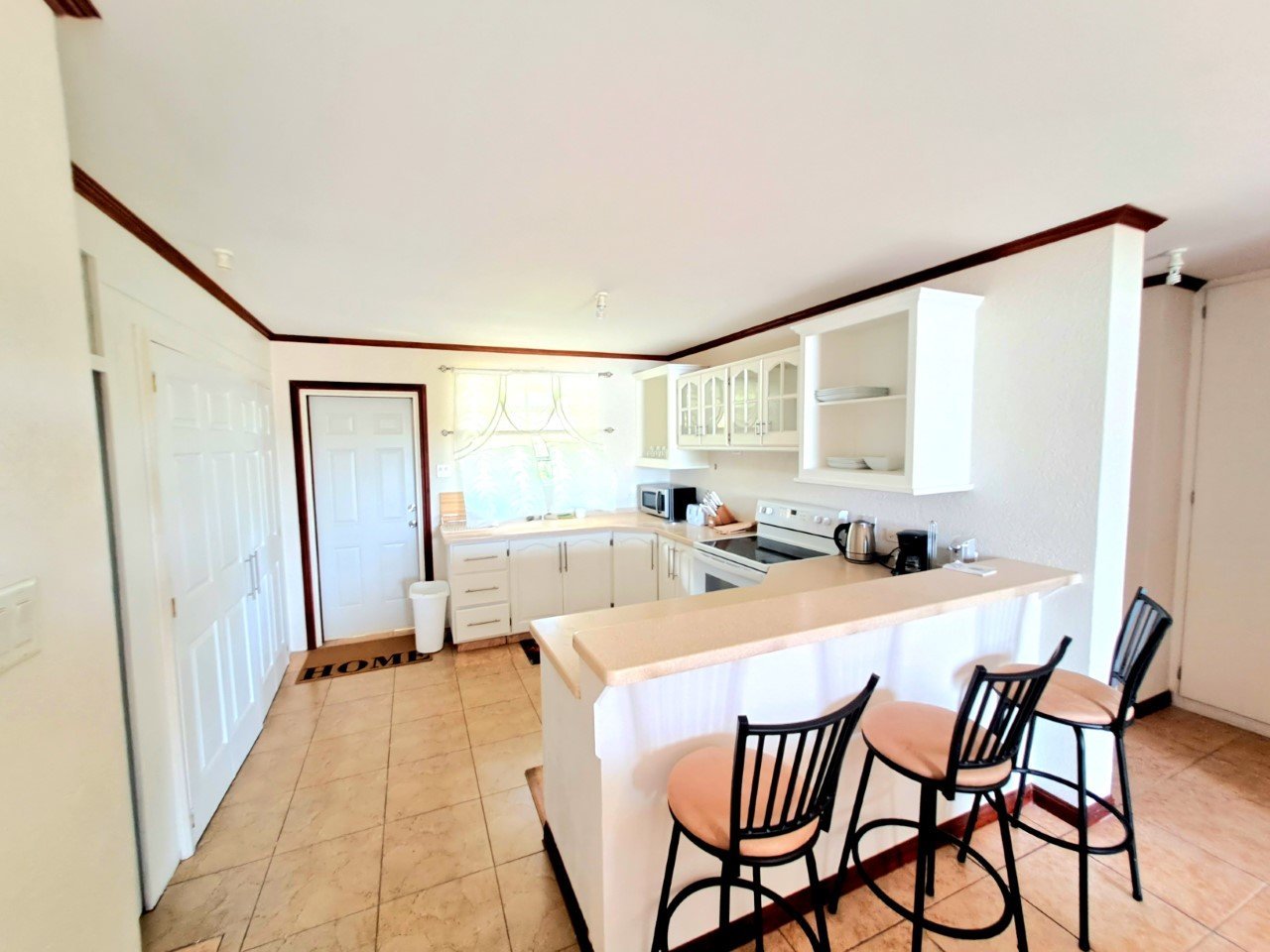 Located in a gated community with electronic gate access and security surveillance, your peace of mind is a top priority. The condo features ceramic tiles and an open concept, inviting the cool Caribbean breezes to embrace your living space. Two patios, one at the entrance and a private oasis surrounded by lush trees, provide the perfect settings for relaxation and outdoor enjoyment.